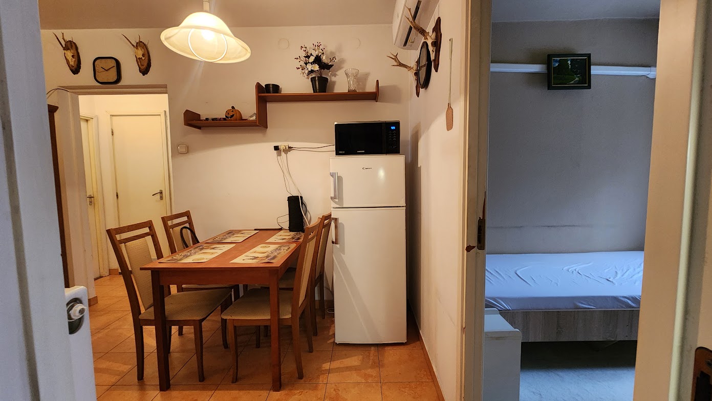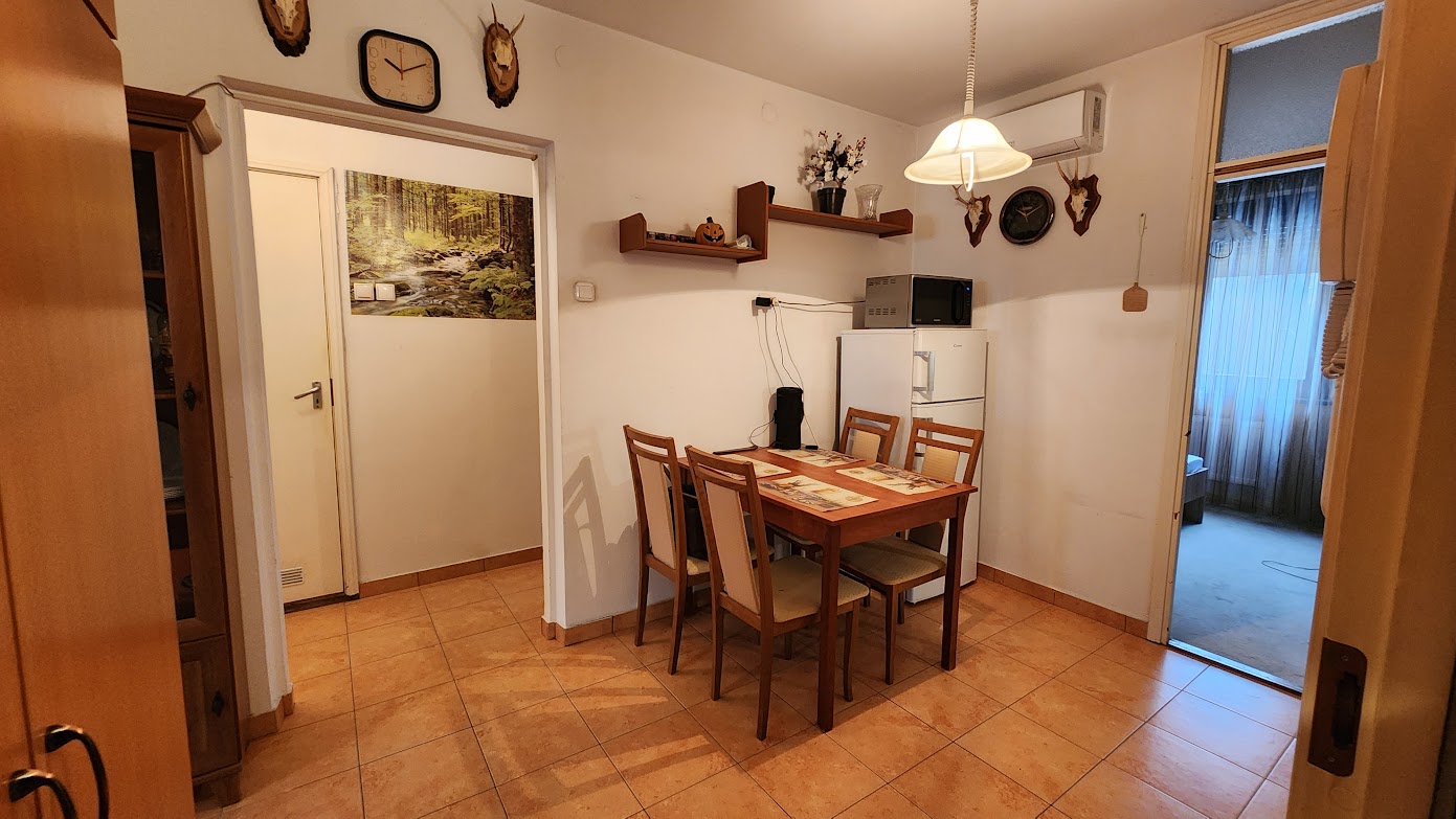 A lakás szíve: Egy tágas, központi étkező, ahol a család minden tagja kényelmesen összeülhet.