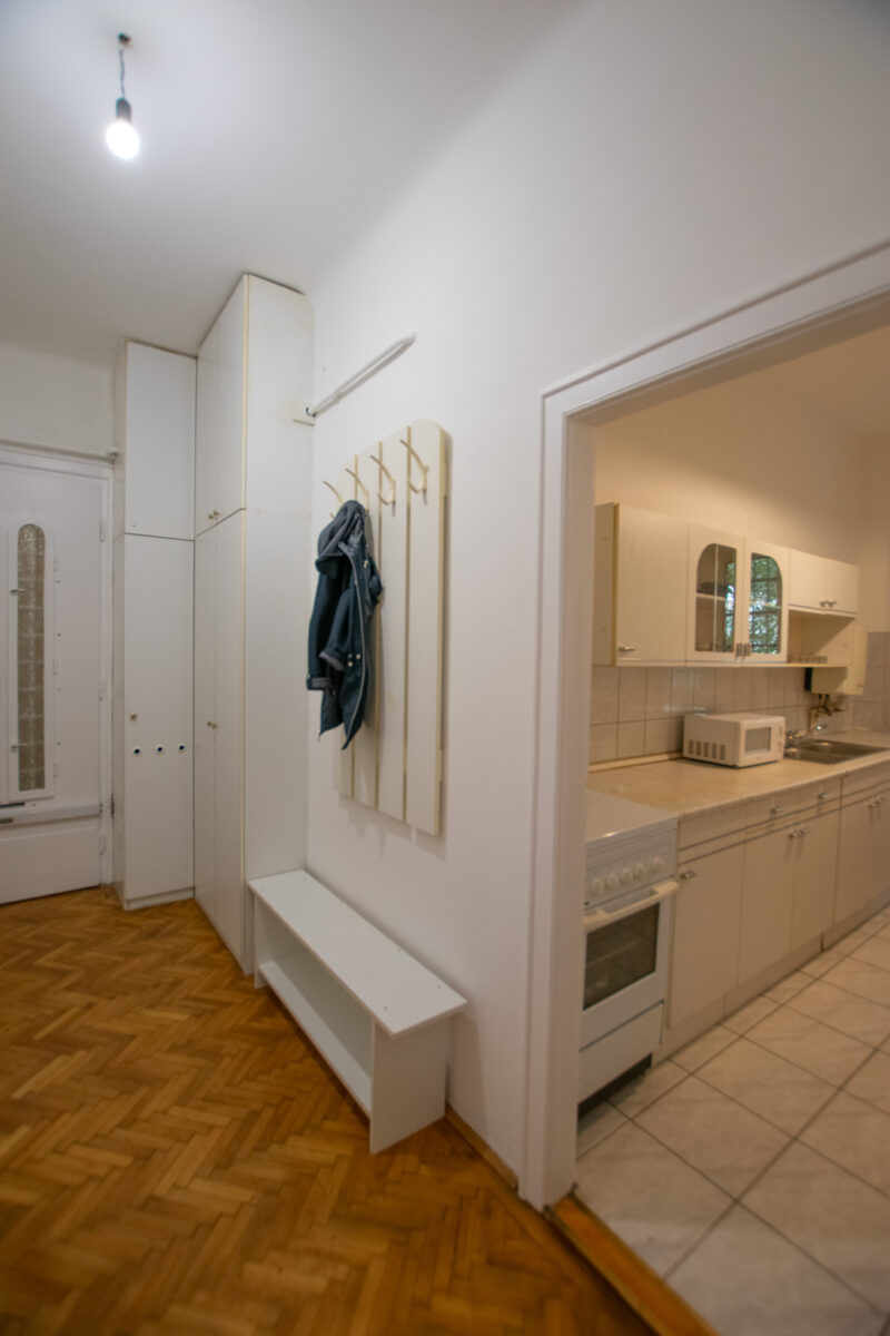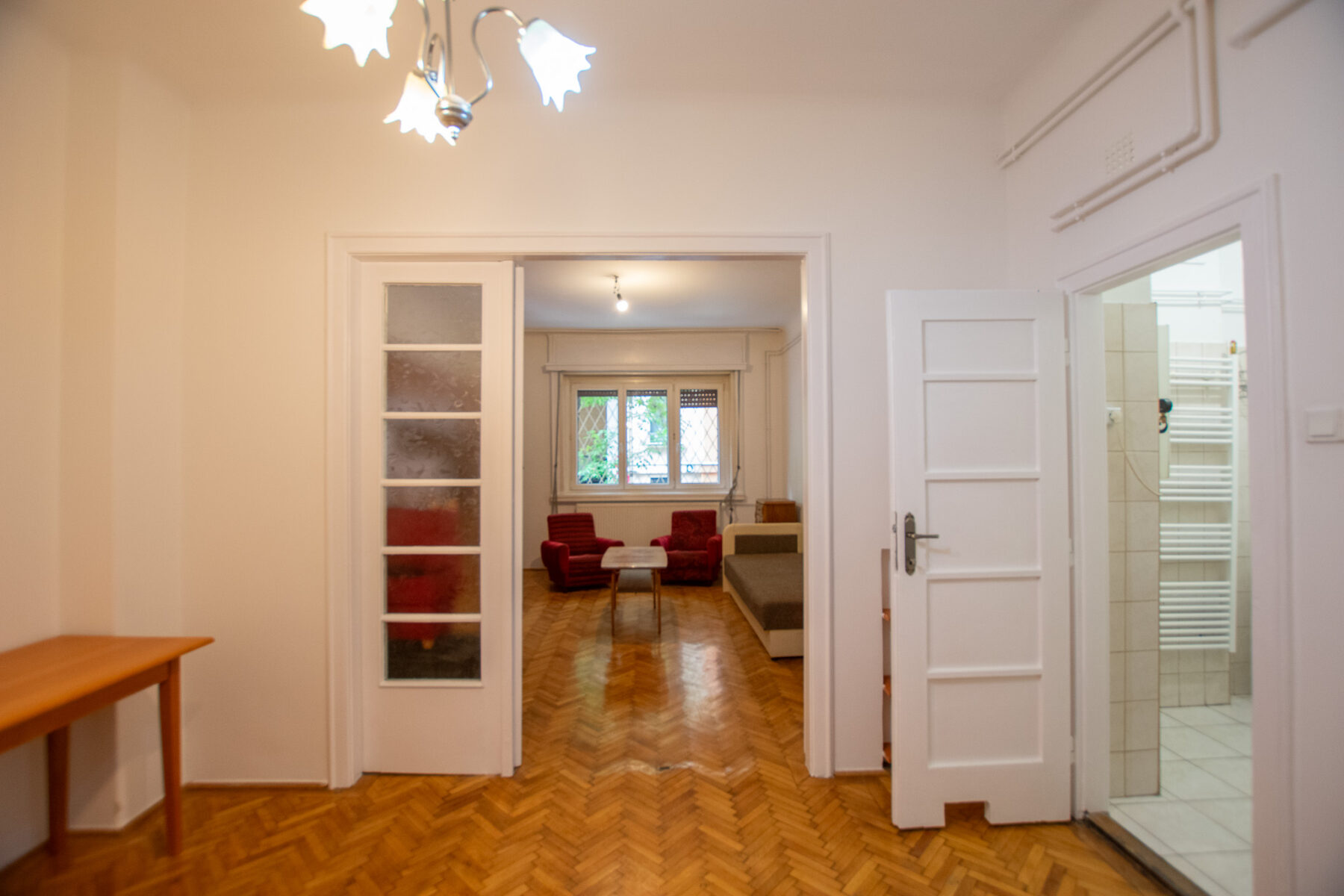 Budapest IX. kerületében, a kedvelt Vaskapu utcában kínálunk megvételre egy 60 m²-es, félemeleten található, 2 szoba + hall elosztású, közepes állapotú lakást, amelyhez saját tároló és egy különleges adottság, a közös kert közvetlen elérése is tartozik.