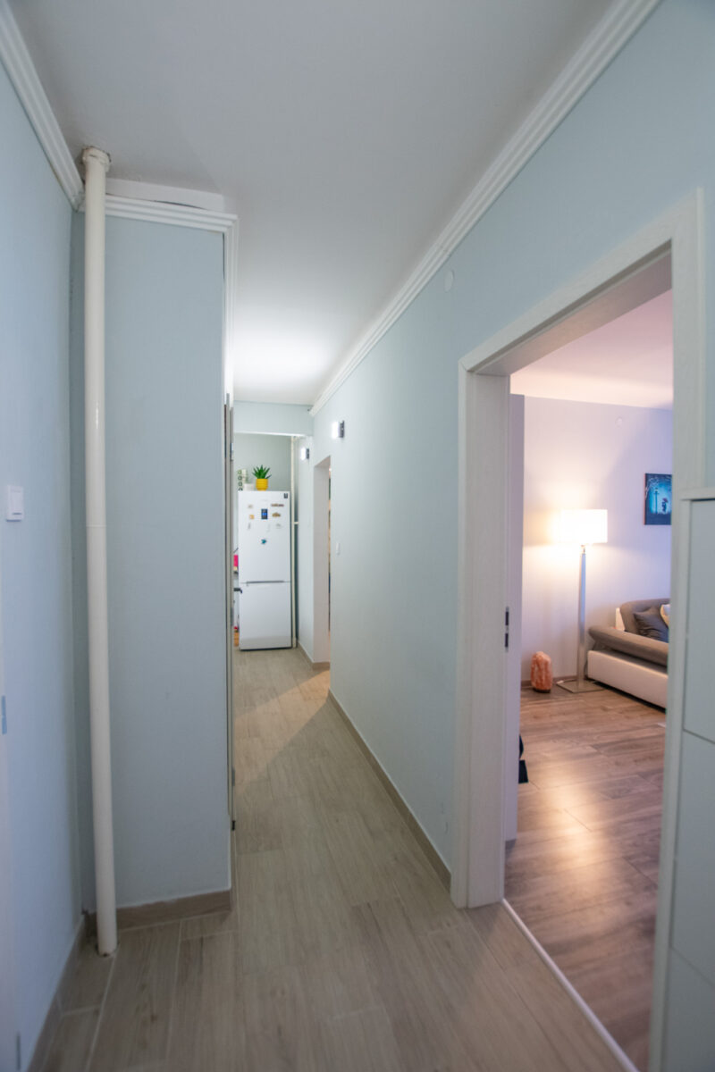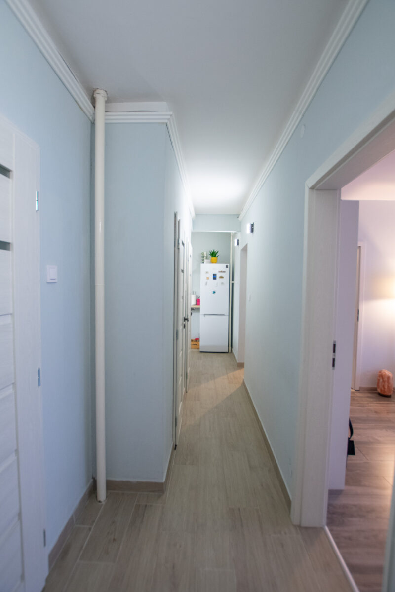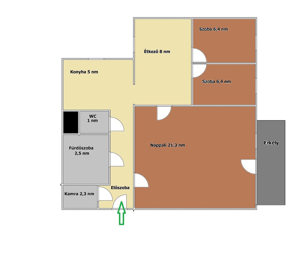 A lakás praktikus elosztású, az 58 m²-en az alábbi helyiségek kerültek kialakításra: